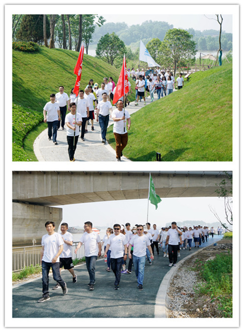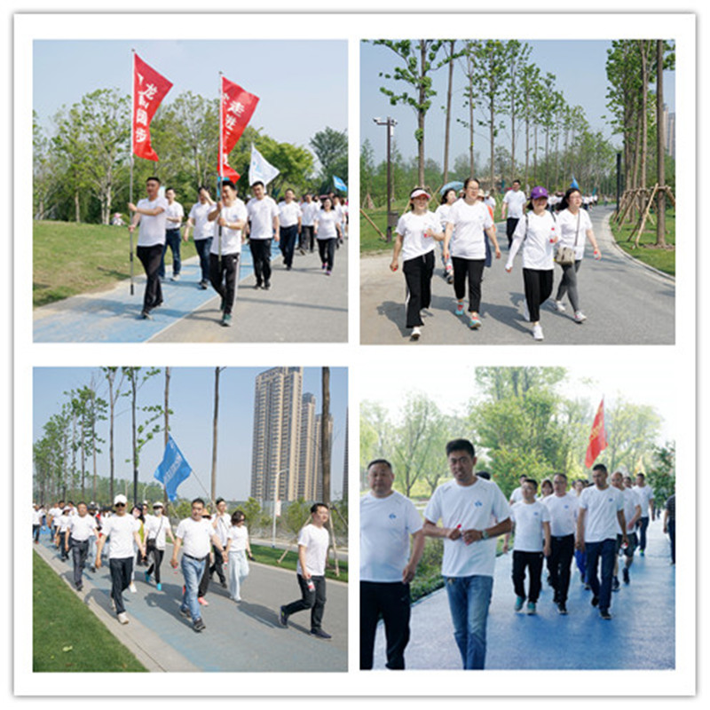 活動開始,首先,總經理王智勇代表公司致詞,做了熱情洋溢的動員,接著,參加活動的各位領導為公司本部及四個子公司共五支代表隊進行了集中授旗,最后,隨著公司執行董事張勇的隆重宣布和發令槍聲的響起,健步走活動正式開始。大家從風景如畫的三河六岸公園音樂噴泉廣場出發,沿著步道,一直走到今年新建成的南水北調源頭公園氣膜館。大家一個個精神飽滿,熱情高漲,意氣風發,邊走邊交流,細數著公司過去及現在發展歷程中的點點滴滴,同時,欣賞著公園美景,感受著健步走帶來的歡樂,大家一路走,一路笑,各種喜悅寫滿了笑臉。