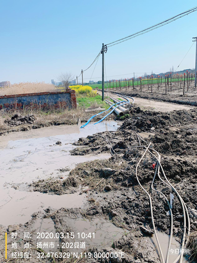 2020年3月14日下午17點20分,公司客服報警求救電話急切響起:郭村鎮某農田里突發水管破裂事故,漏出的水向周圍的莊稼地和路面洶涌而去,嚴重影響當地老百姓的正常生活。