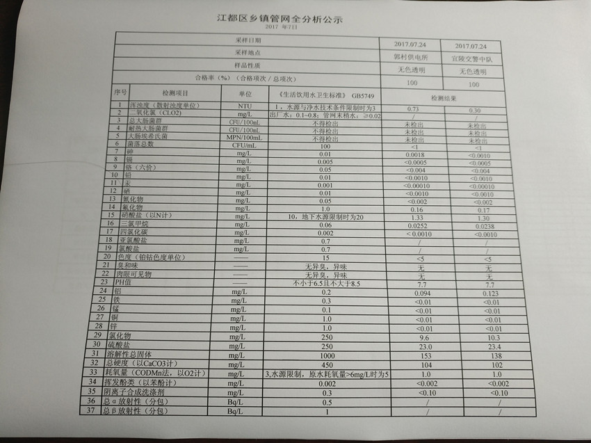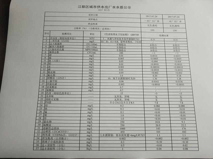 水質(zhì)公示