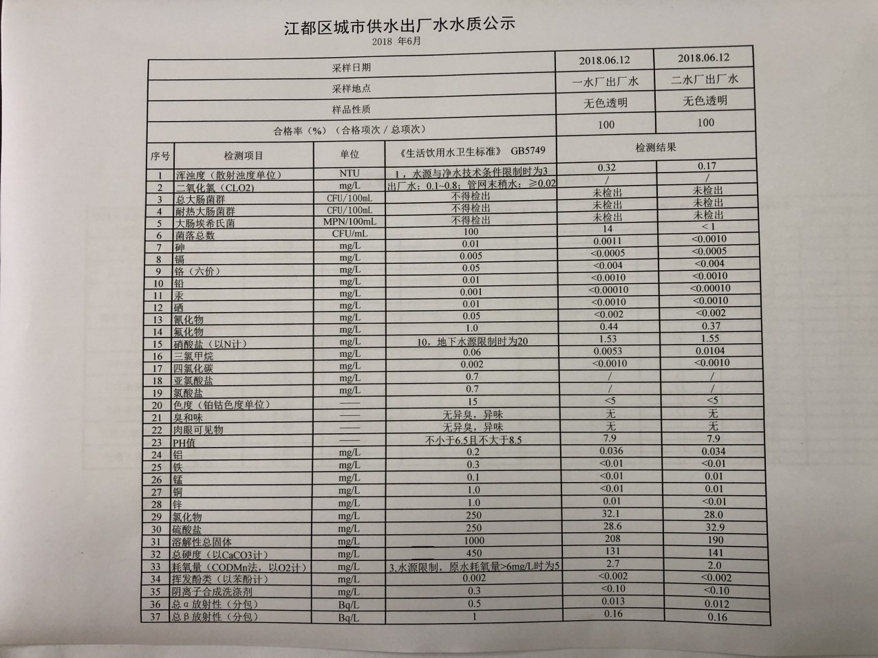 水質(zhì)公示