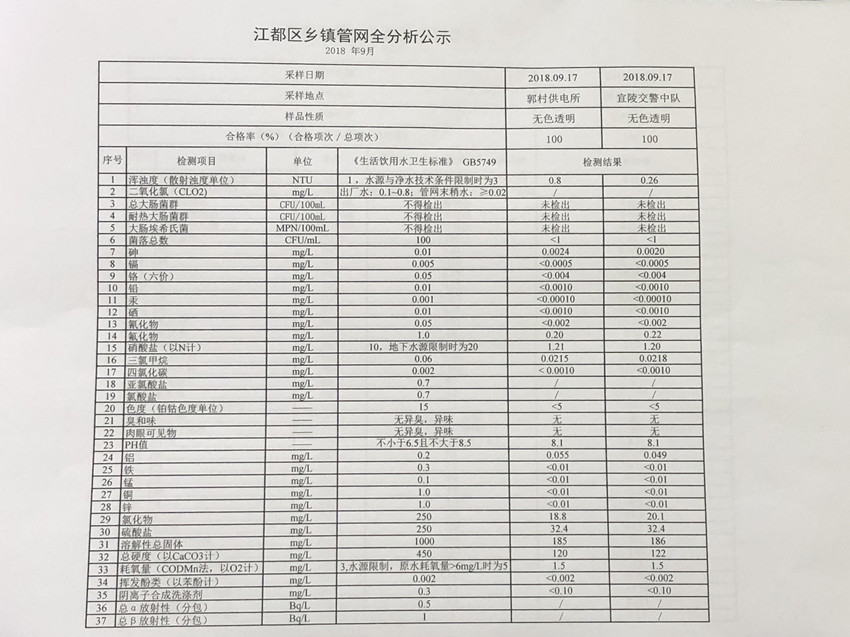 水質(zhì)公示