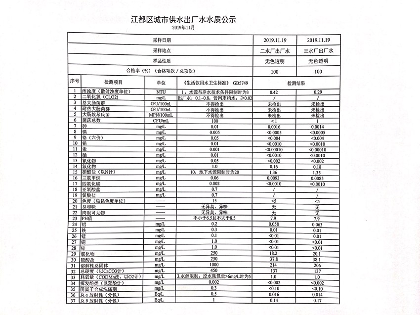 水質(zhì)公示