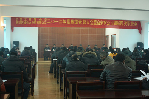2月5日,我公司召開2012年度總結表彰大會暨四屆四次職代會,會上,劉書政總經理作了題為《開拓創新 務實奮進 全面譜寫城鄉一體化供水新篇章》的工作報告,對2012年供水工作做了認真總結,并對2013年工作進行了細致謀劃,大會還對2012年度先進集體和先進個人進行了表彰。