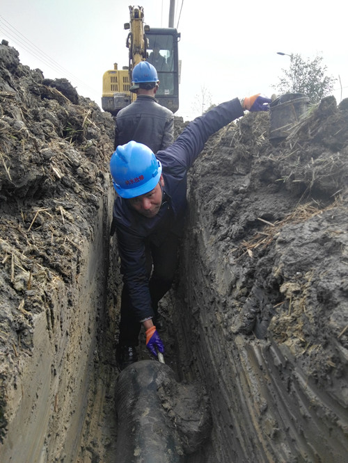 以當前在建的最大惠民供水工程為例,區(qū)自來水公司聯合惠民區(qū)域供水公司重點針對小紀鎮(zhèn)原東南水廠供水范圍內西彭村、花彭村1500戶群眾吃水難問題,組織黨員骨干力量,積極推進管網優(yōu)化配套工程,此項工程總長13公里,項目投資約600萬元,經過前一階段的不懈努力,目前已完成11公里管道鋪設任務。施工人員正在積極克服當地水網眾多等困難,加緊推進管道施工和過河過路節(jié)點工程,爭取早日貫通管道,使當地群眾徹底告別吃水難的問題。